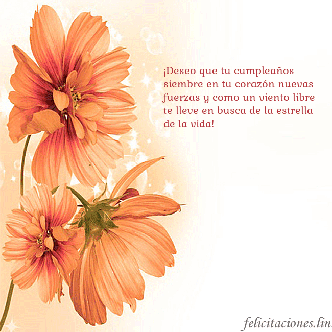 ¡Deseo que tu cumpleaños siembre en tu corazón nuevas fuerzas y como un viento libre te lleve en busca de la estrella de la vida!
