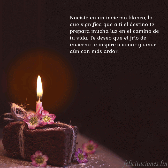 Naciste en un invierno blanco, lo que significa que a ti el destino te prepara mucha luz en el camino de tu vida. Te deseo que el frío de invierno te inspire a soñar y amar aún con más ardor.