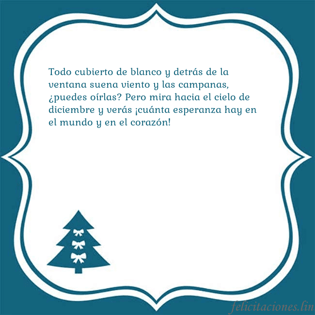 Todo cubierto de blanco y detrás de la ventana suena viento y las campanas, ¿puedes oírlas? Pero mira hacia el cielo de diciembre y verás ¡cuánta esperanza hay en el mundo y en el corazón!