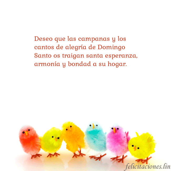 Deseo que las campanas y los cantos de alegría de Domingo Santo os traigan santa esperanza, armonía y bondad a su hogar.